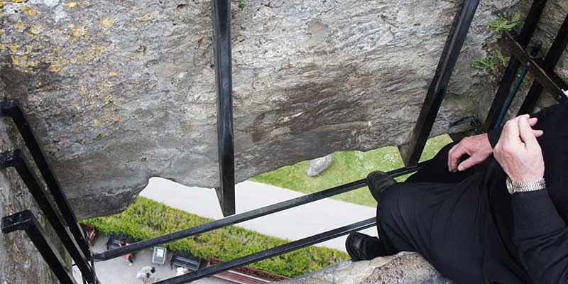 It’s a legitimate concern. To kiss the Blarney Stone, you have to lie down on your back and lean backwards over the edge of the castle. If you need a little help standing on your feet, too much force could send you toppling over that sturdy railing circa 1897. An unlikely situation, I know. But come on. Look at that railing.