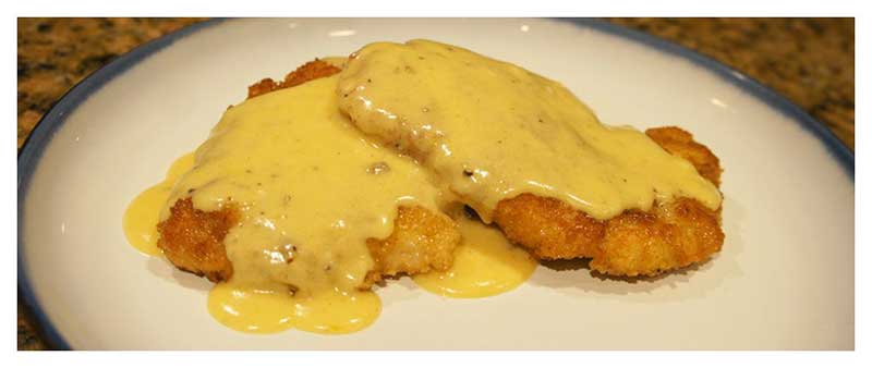 Dad called yesterday. He’s ready to go back to South Africa. Maybe he’s got the travel bug after my trip with Mom? Regardless, I started craving some South African treats and not just biltong or melktert. I was craving the ultimate comfort food: chicken schnitzel with cheese sauce, or as I like to call it, fried chicken covered in macaroni and cheese without the macaroni. And while you can get fried chicken in the States, there’s nothing quite like schnitzel and cheese.