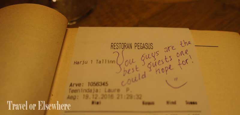 Pegasus: Hands down, this was our favorite restaurant in Tallinn, and yes, we can thank Kristi for that. Located in a Soviet-era building, Pegasus prepares classic Estonian cuisine with a modern twist. From the groats served with marinated apple and beetroot to the wild game entrée to the blackcurrant semolina, I could have planted myself at this restaurant for a week and eaten my way through their menu. Their take on traditional Estonian black bread was absolutely scrumptious. A real plus? They’re known for slipping charming notes to their patrons, either tucked inside a book with the bill or under an after-dinner coffee. This place is a must. Reservations recommended.