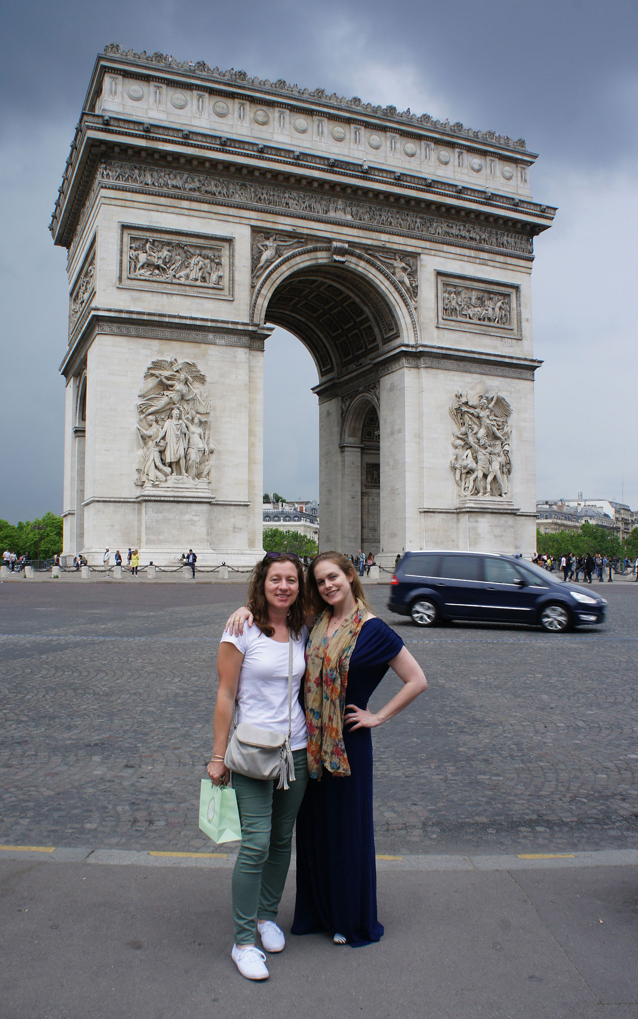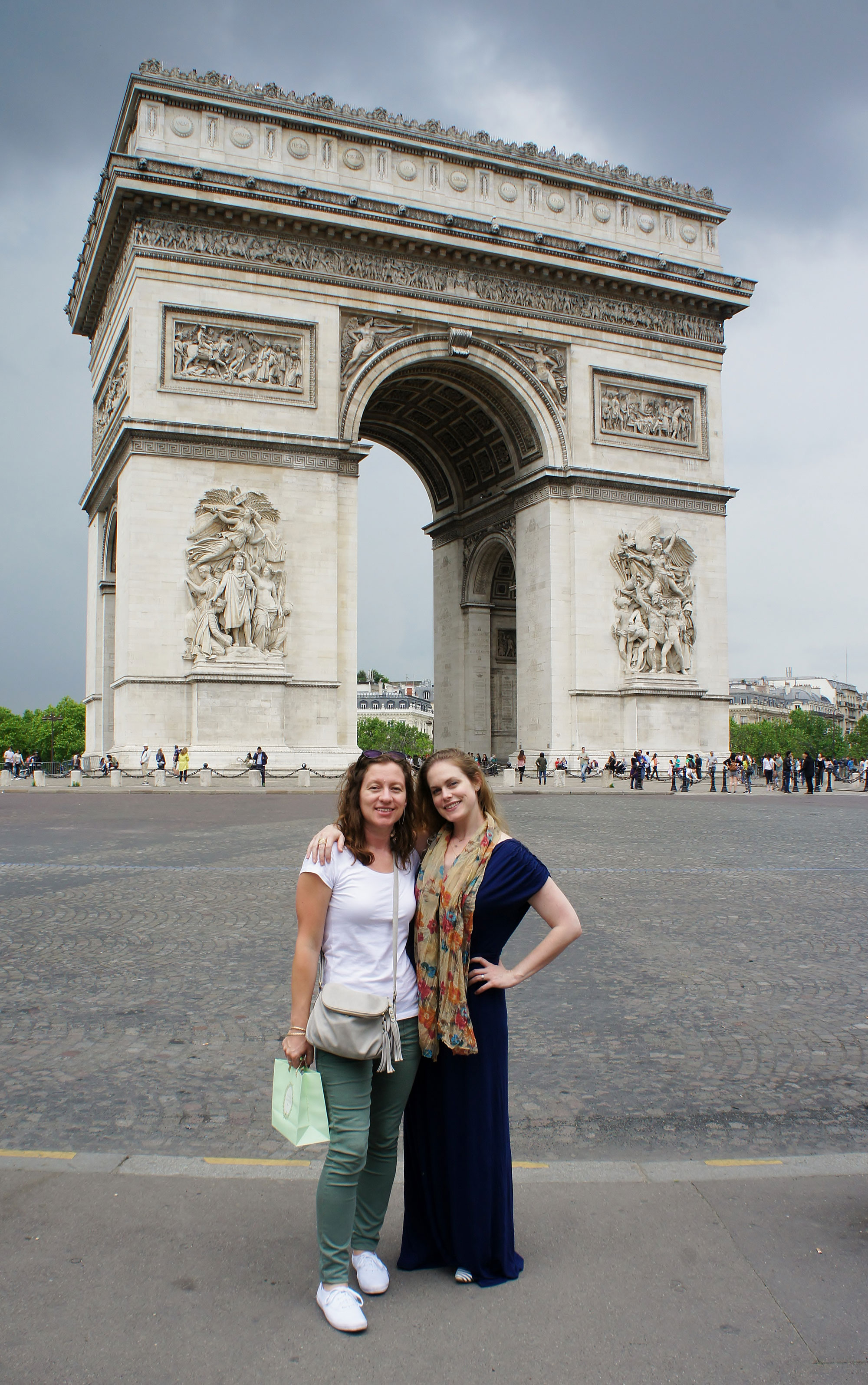 This one was fun. When I sent the picture to Cass, she said, “There’s no way you got a picture at the Arc de Triomphe without traffic behind us.” I was coy, because technically there was just one car behind her and Katie when I took the picture. (Usually the road is filled with multiple “lanes” of traffic, although I’m not sure if anyone is driving in an actual lane.) I took two pictures: one with the car on their right and one with the car on their left. I was able to slice the car out of one image and drop in the scene from the second in the void. Voila! No traffic at the Arc de Triomphe.