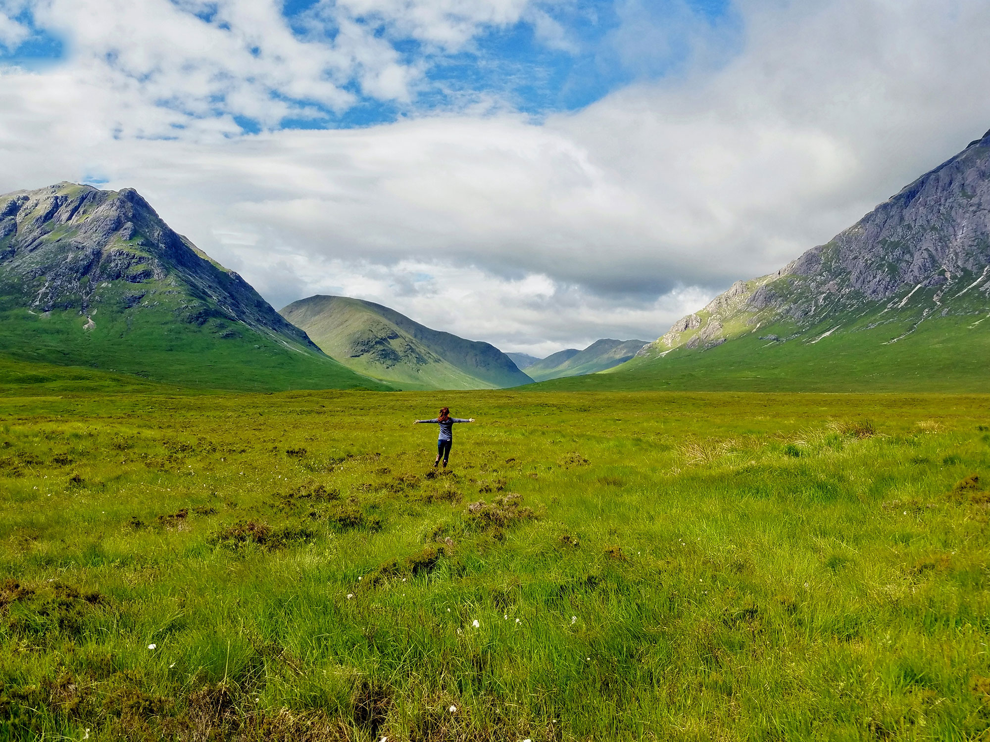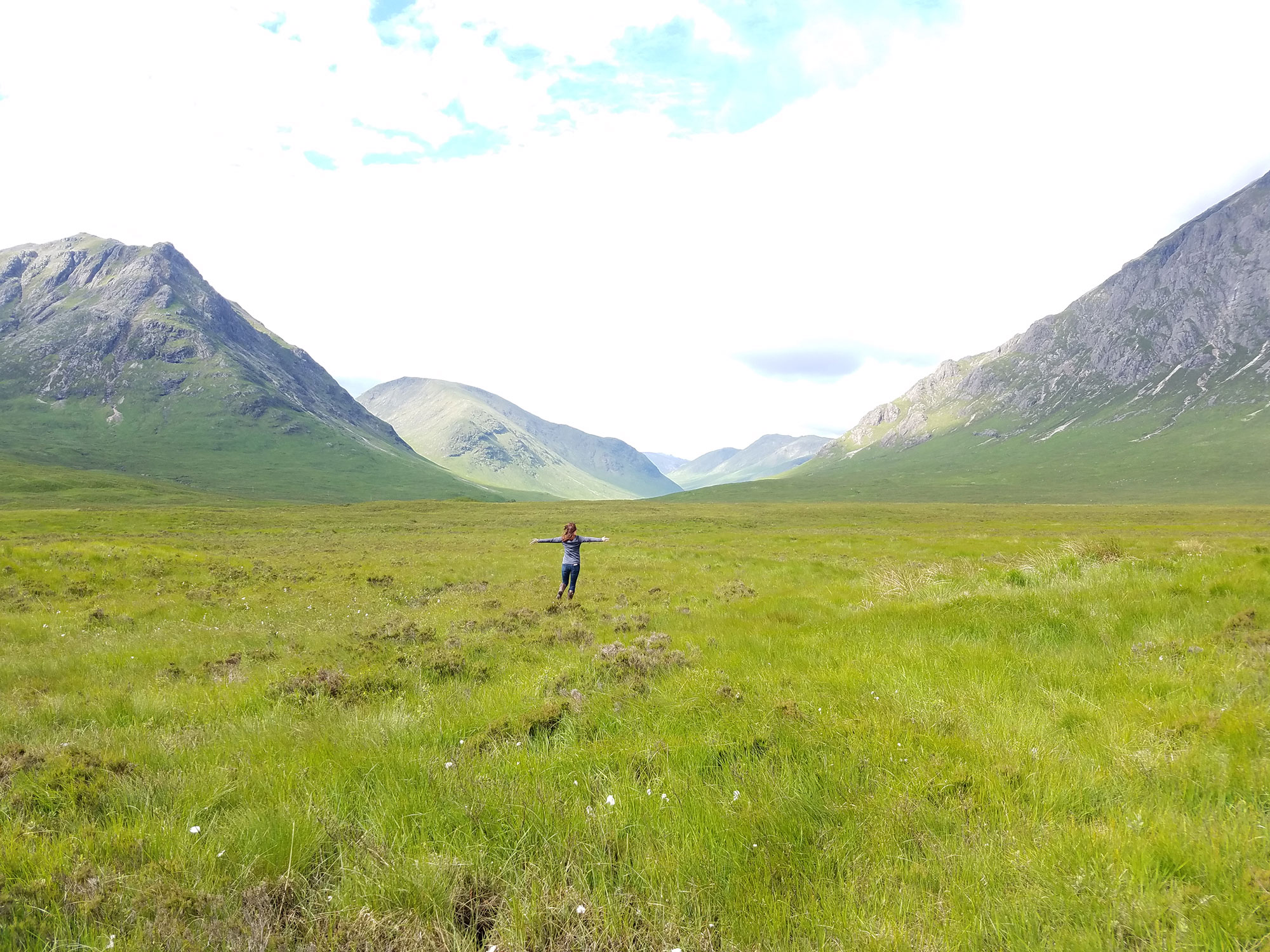 You’re out in the middle of Rannoch Moor. You have the urge to run through the fields towards the mountains, and your friend whips out her phone and takes a snap…only the phone isn’t able to process all that brightness coming out from behind the clouds for the brief 5 minutes of sunlight in Scotland. While it wasn’t hard to bump up the saturation on the field, the sky was a bright blaze of white. Luckily, I also took a photo from the exact same spot, and I was able to drop my sky into my friend’s photo.