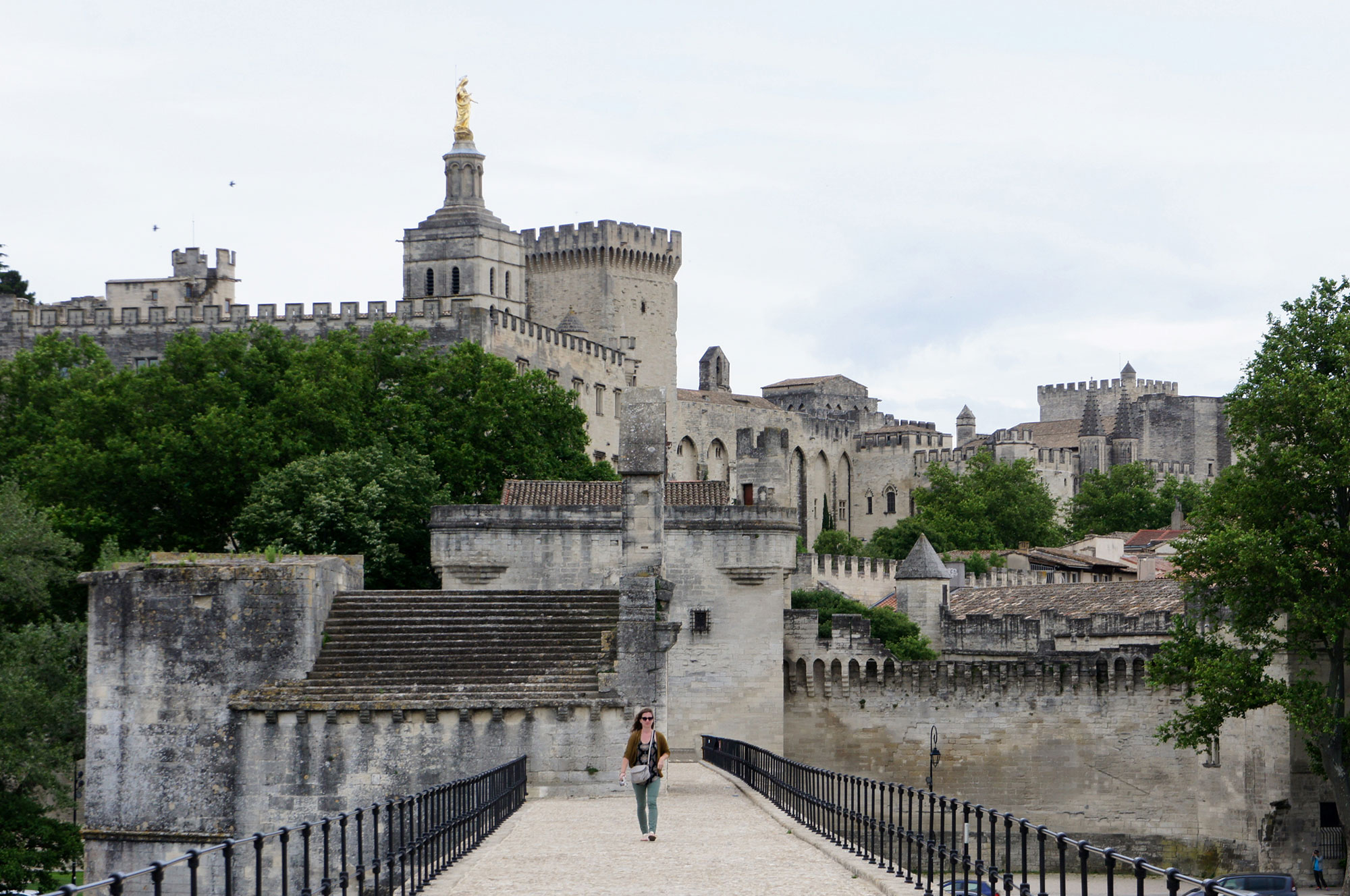 As you might have guessed from Example 3, I’m not really into having people I don’t know in my pictures. Here’s a moment from my trip to France: Despite the fact that there were probably 20 other people on the Pont d’Avignon with Cass and me, there was a brief moment when there were only two people ahead of us. I quickly took a picture before anyone else walked into view. Then back at home, I “rebuilt” the bridge over the people by using other elements in the photo.